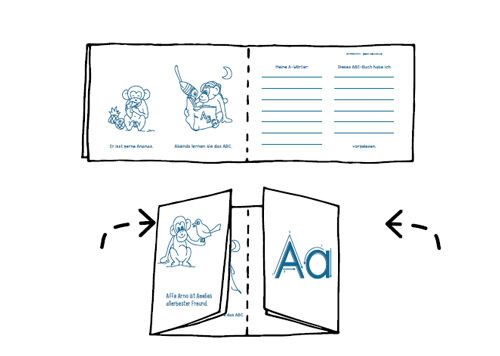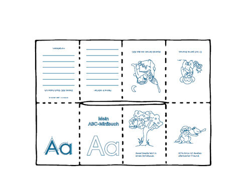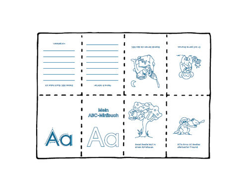 Vorlagen für 36 Minibücher zum Falten, Ausmalen, Lesen und Vorlesen. Ein wunderbares Projekt zum Erlernen des Alphabets. In jedem Minibuch gibt es jeweils vier Seiten mit sprachspielerischen Tiergeschichten und entsprechenden Illustrationen, die die Kinder bunt ausmalen können. Jedes Minibuch ist einem Buchstaben, einem Umlaut (Ä, Ö, Ü), einem Doppellaut (Diphthong: Au, Ei, Eu) oder einem Sch-Laut (Sch, Ch, Sp, St) zugeordnet. Wenn man das komplette Alphabet durchgearbeitet hat, hat man eine eigene, sehr persönliche Bibliothek mit 36 Bücher... WOW! Für die Minibücher empfehlen wir das Malpapier, DIN A4.