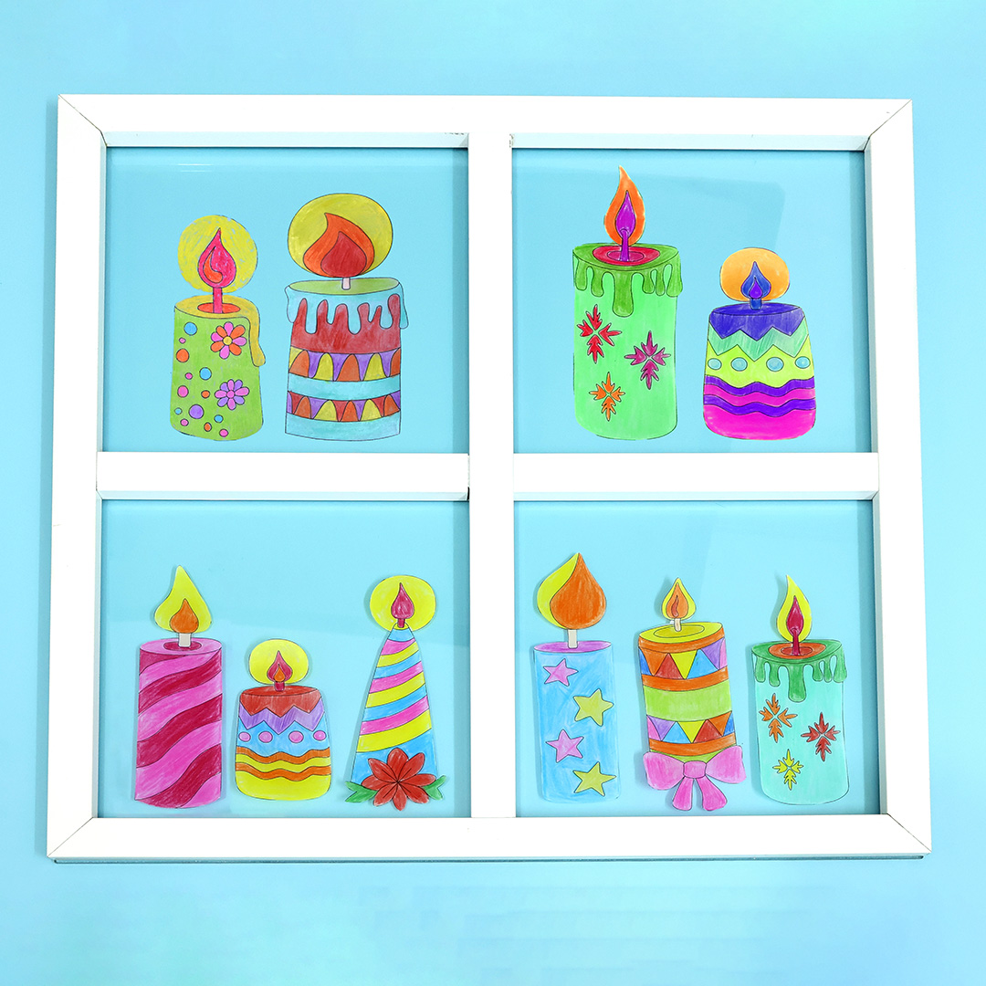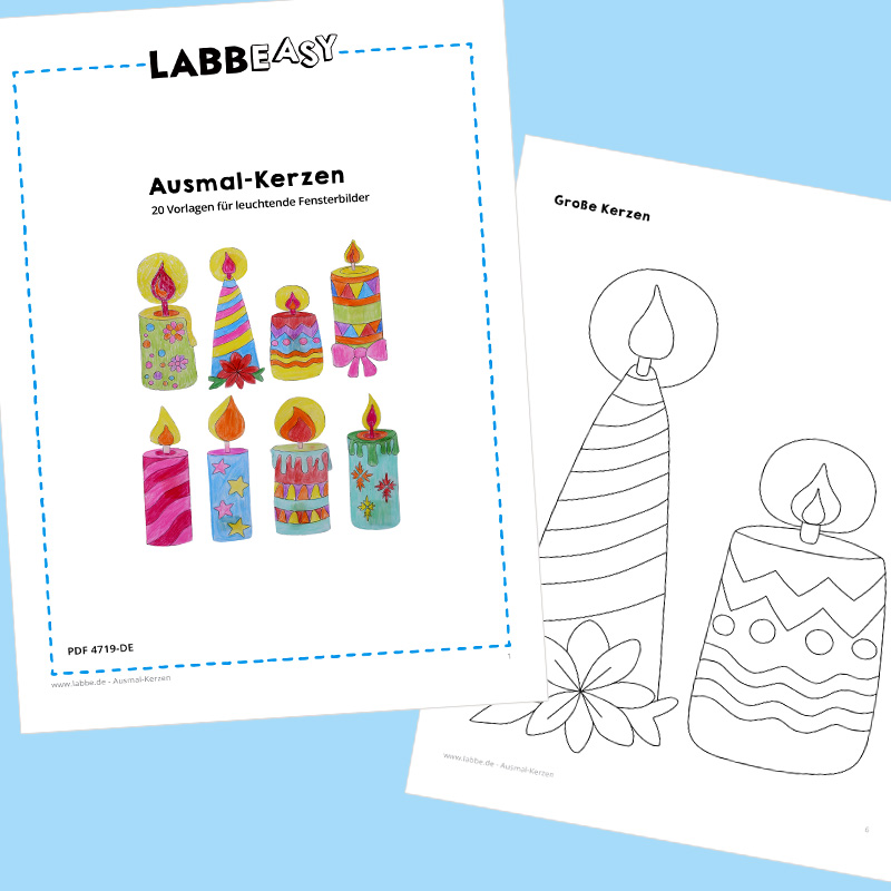 Mit diesen Ausmal-Kerzen entstehen stimmungsvolle Fensterbilder, die Licht und Farbe wunderbar zur Geltung bringen. Das PDF enthält 20 verschiedene Kerzenmotive in zwei Größen, die sich individuell ausmalen und gestalten lassen.