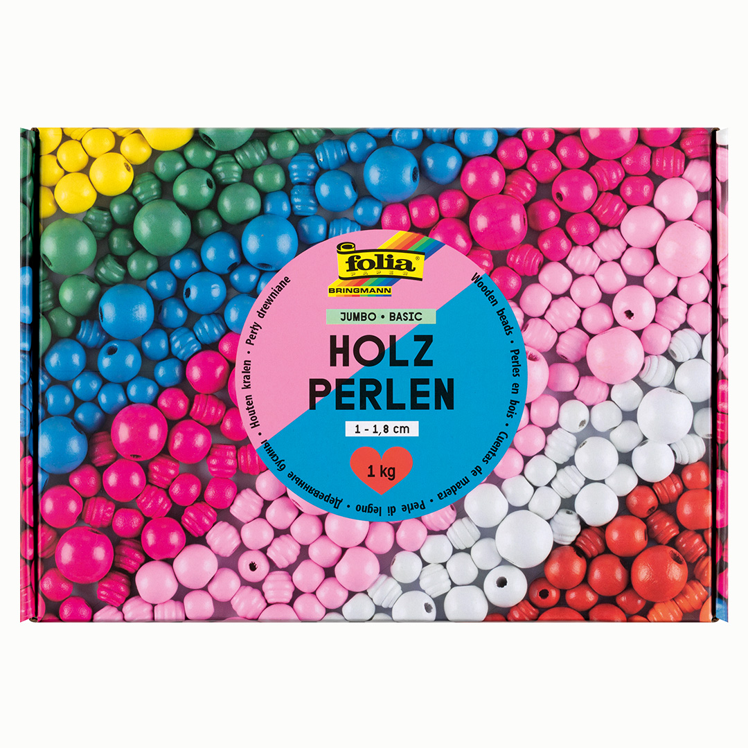 1 kg bunte Holzperlen in 8 Farben, Durchmesser Ø 1 bis 1,8 cm