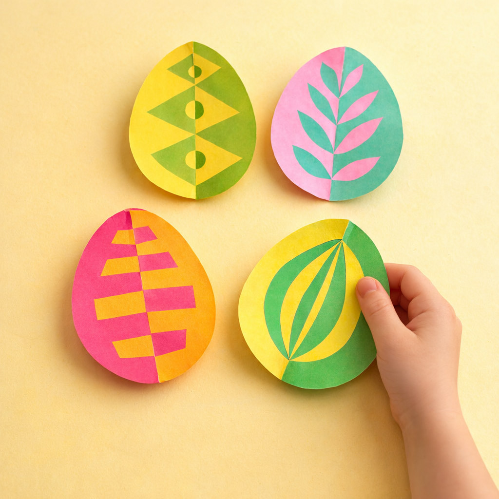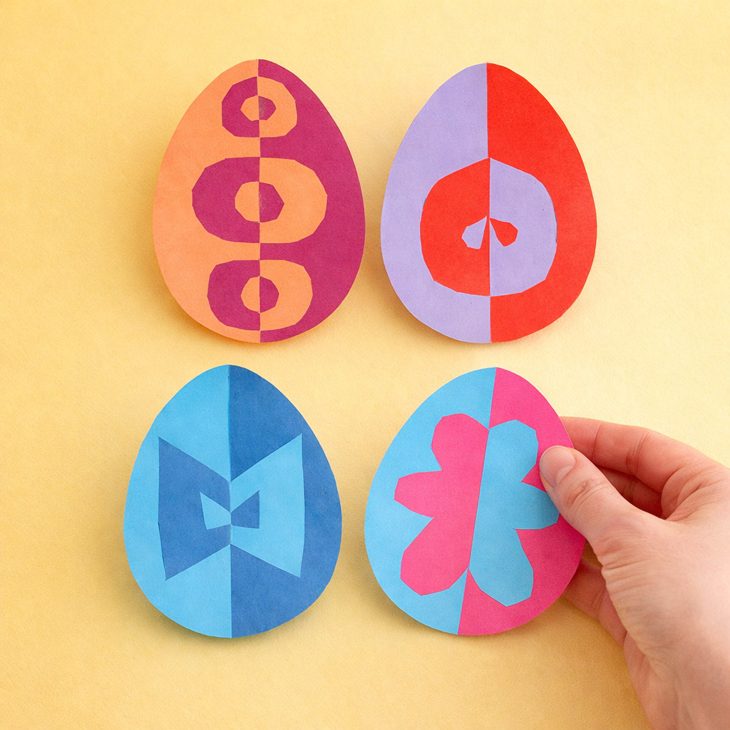 Für die Klappschnitt-Eier empfehlen wir buntes Druckerpapier.