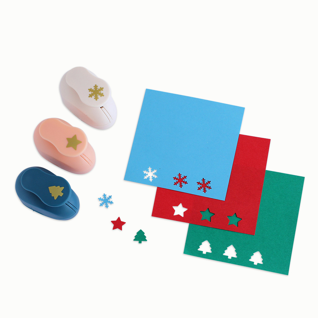 3 Motivstanzer: Weihnachtsbaum, Stern und Eiskristall, Motivgröße je 1,5 - 2 cm