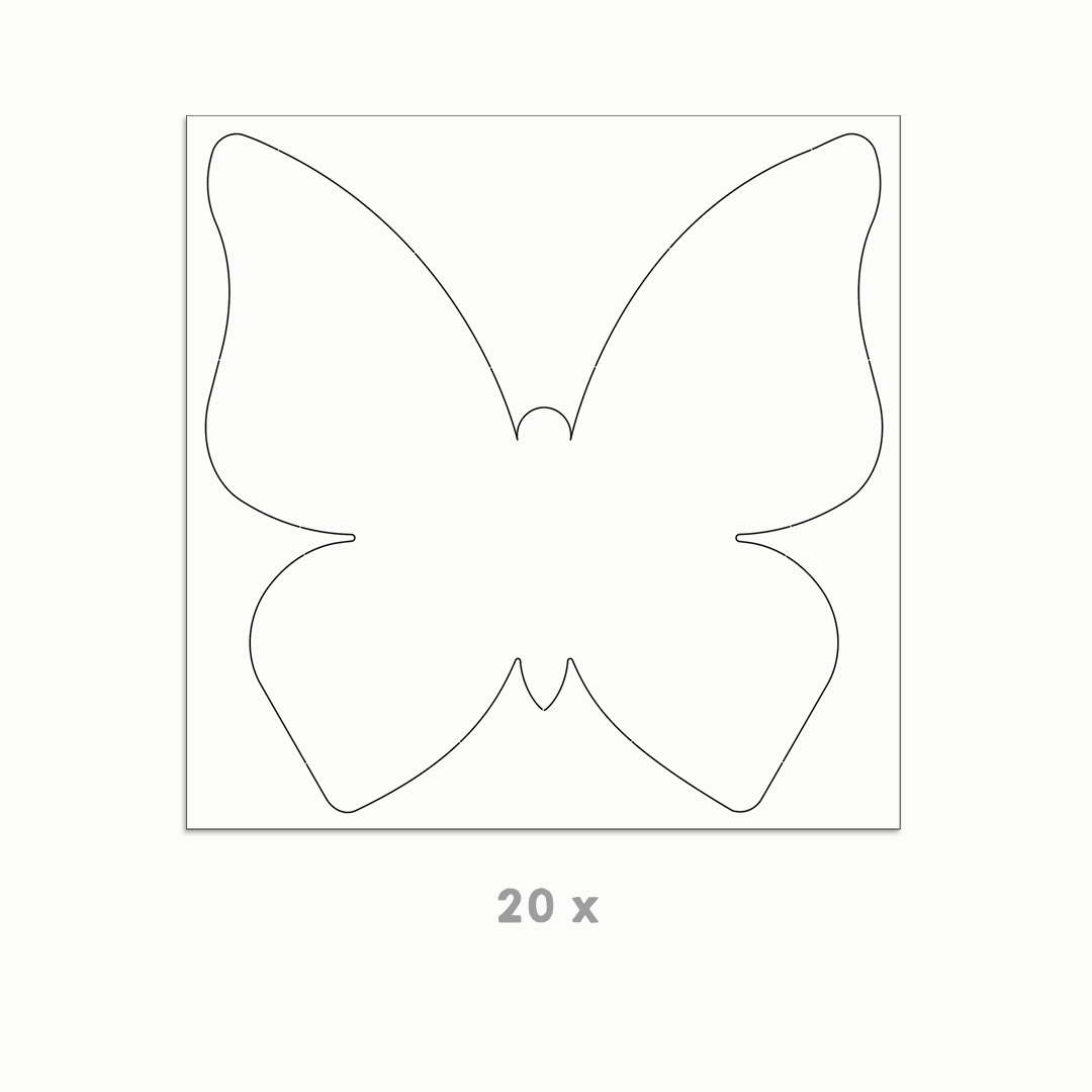 20 Blanko-Schmetterlinge aus weißem Karton, 22 x 22 cm
