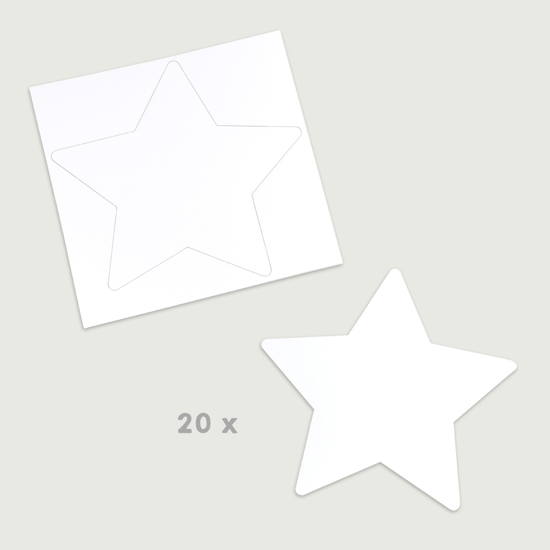 Diese großen Blanko-Sterne aus stabilem weißem Fotokarton (300 g/m²) sind die perfekte Grundlage für kreative Bastelideen. Jeder Stern ist 21 × 22 cm groß und bietet Kindern viel Platz zum Bemalen, Bekleben oder Bestempeln.